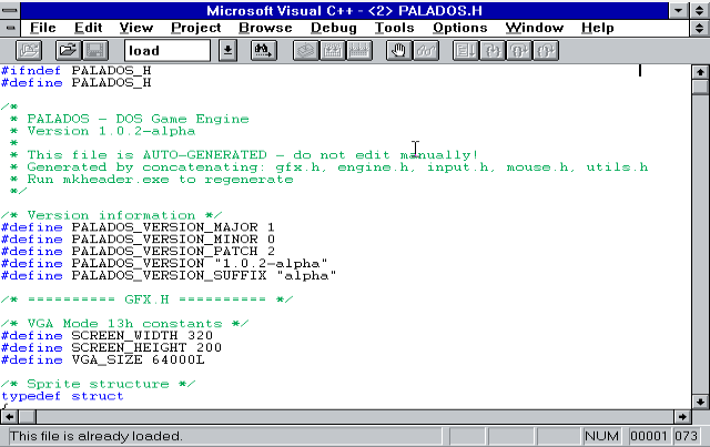 Palados is a simple DOS game engine in C inspired by PICO-8 API. Made with the help of Claude AI.
